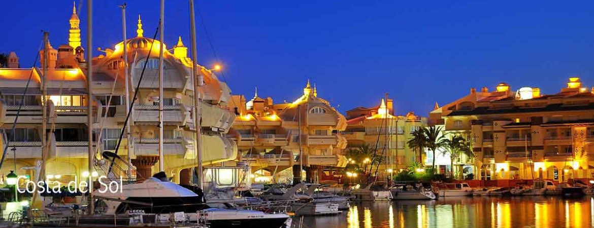 The Costa del Sol is a region in the south of Spain, in the autonomous community of Andalusia, comprising the coastal towns and communities along the coastline of the Province of Málaga. The Costa del Sol is situated between two lesser known coastal regions, the Costa de la Luz and the Costa Tropical. Costa del Sol är en region i södra Spanien, i den autonoma regionen Andalusien, som består av kuststäder och samhällen längs kusten i provinsen Málaga. Costa del Sol ligger mellan två mindre kän- Benalmadena